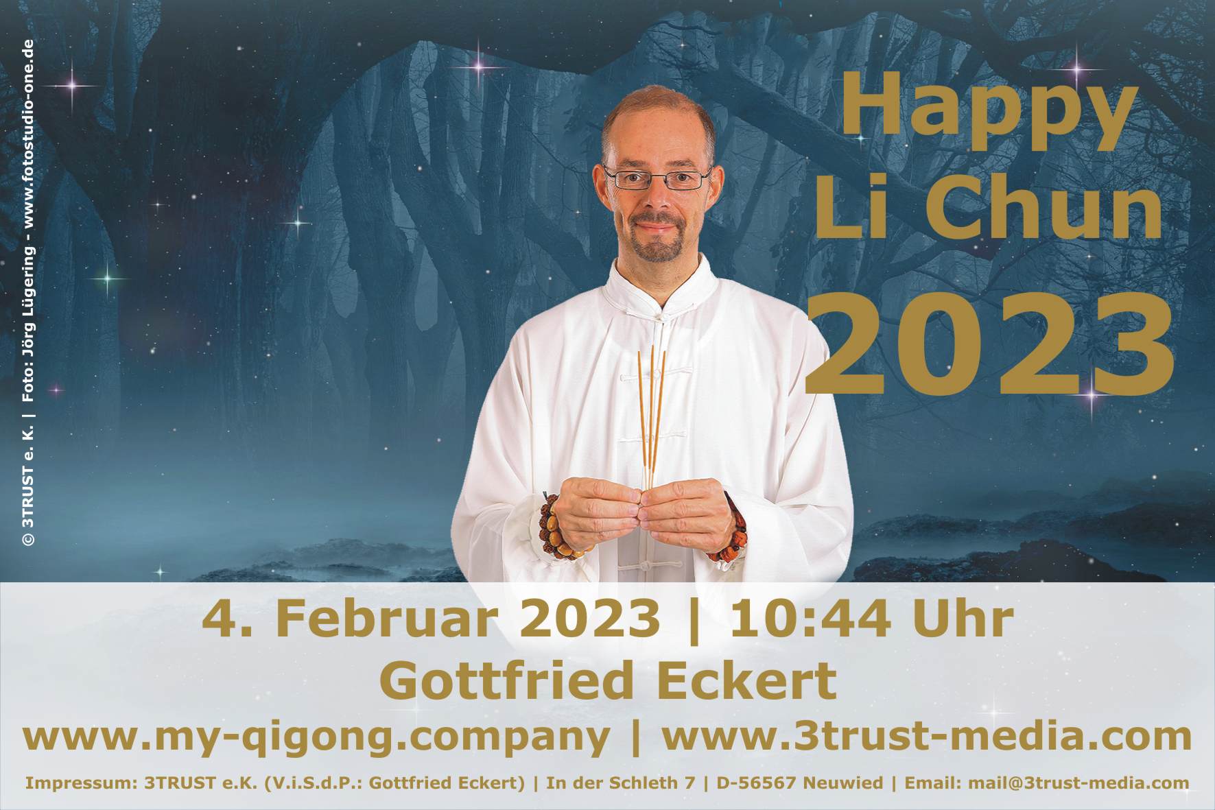 04.02.2023 | HAPPY LI CHUN 2023 Start des chinesischen Wasser-Hase-Jahres Gui Mao nach dem Sonnenkalender Grußkarte |
